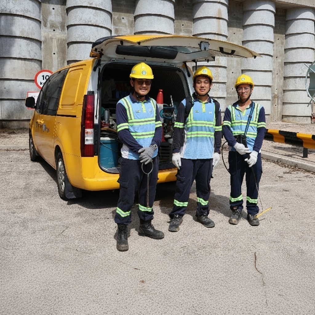 每次检测,煤气公司的工程人员必须带备不同的检测工具上山,透过专业仪器探测并分析管道状态。