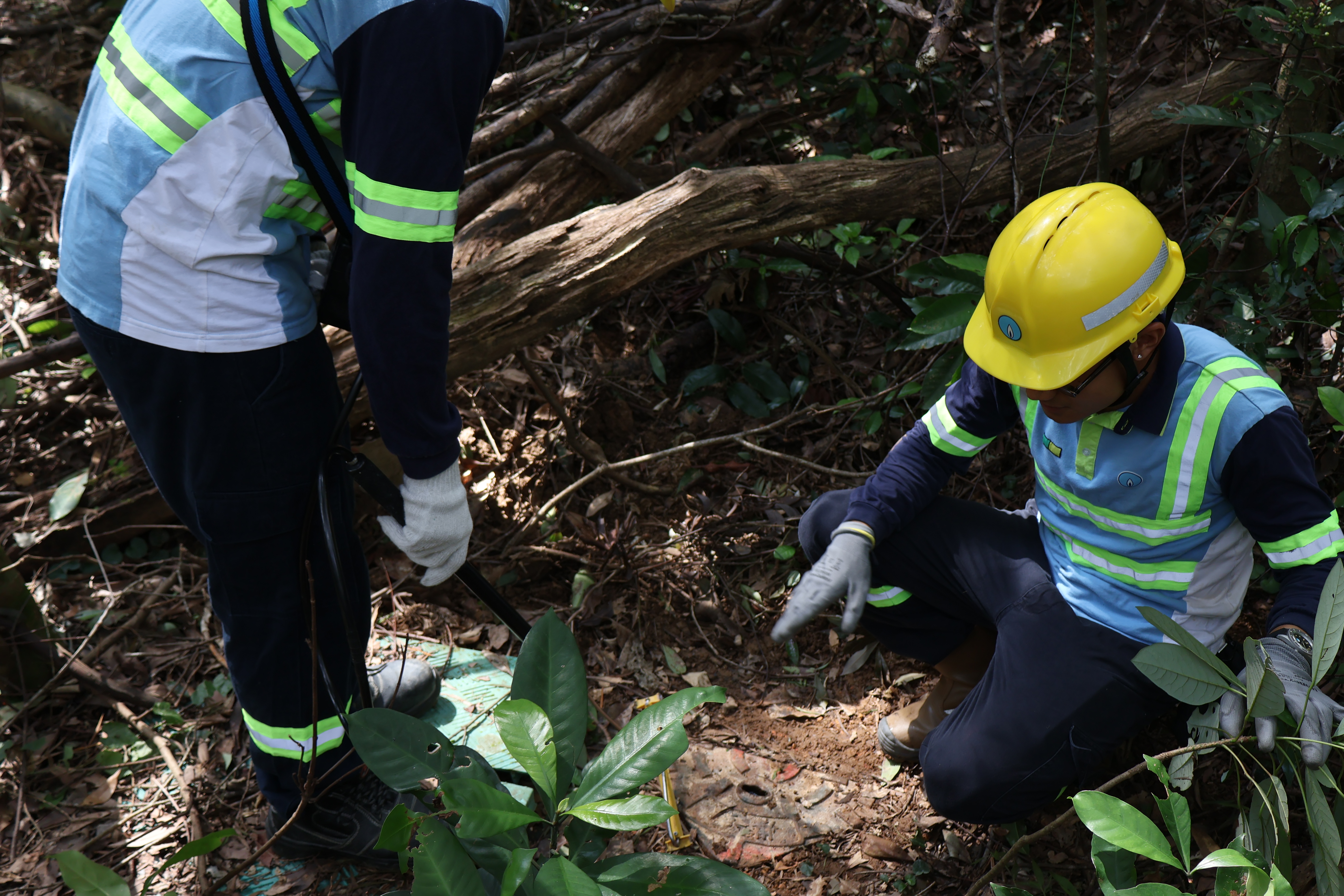 输气操作部系统维修组的陈廸奇 (Dicky)每次上山都带着不同工具进行各项检测。