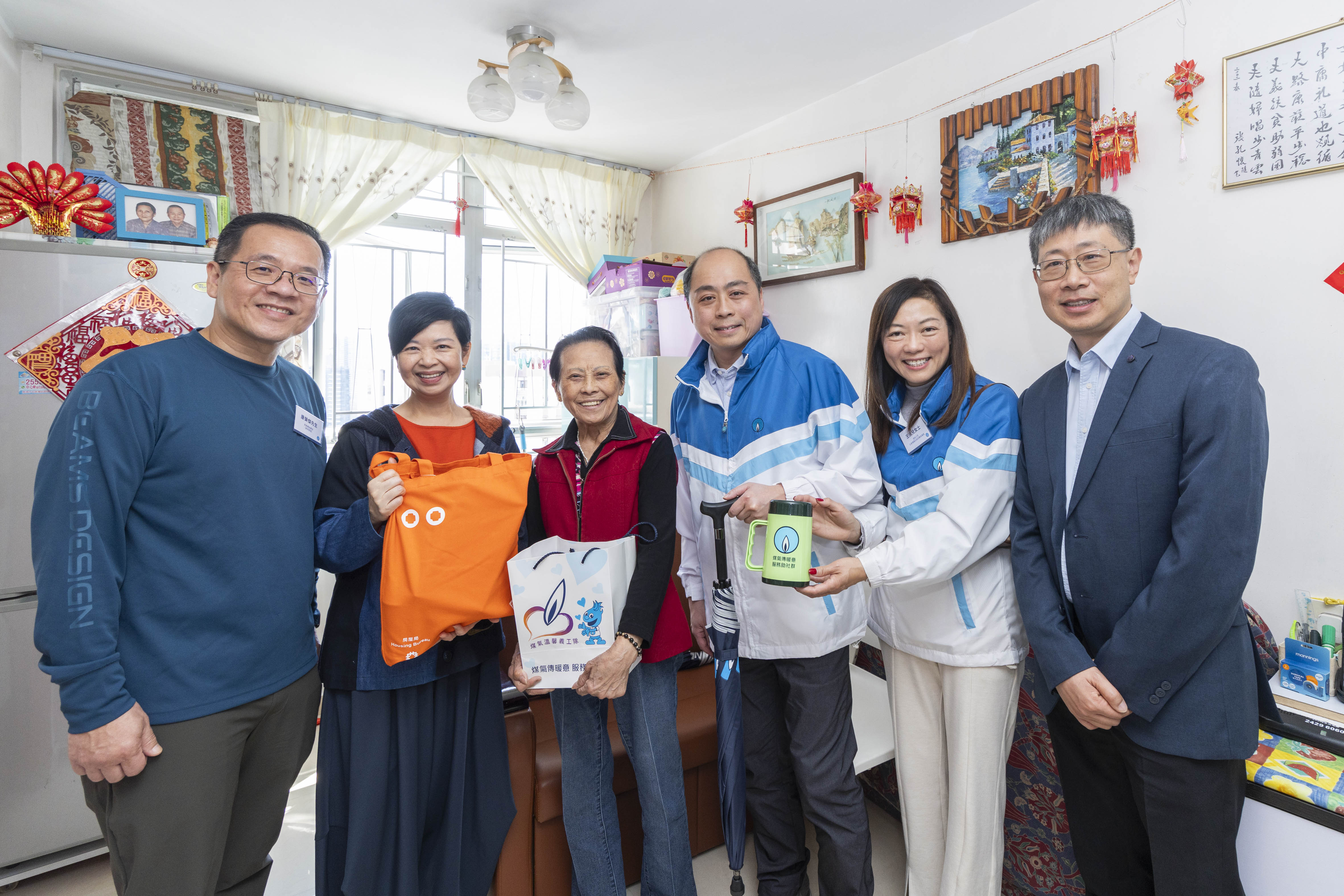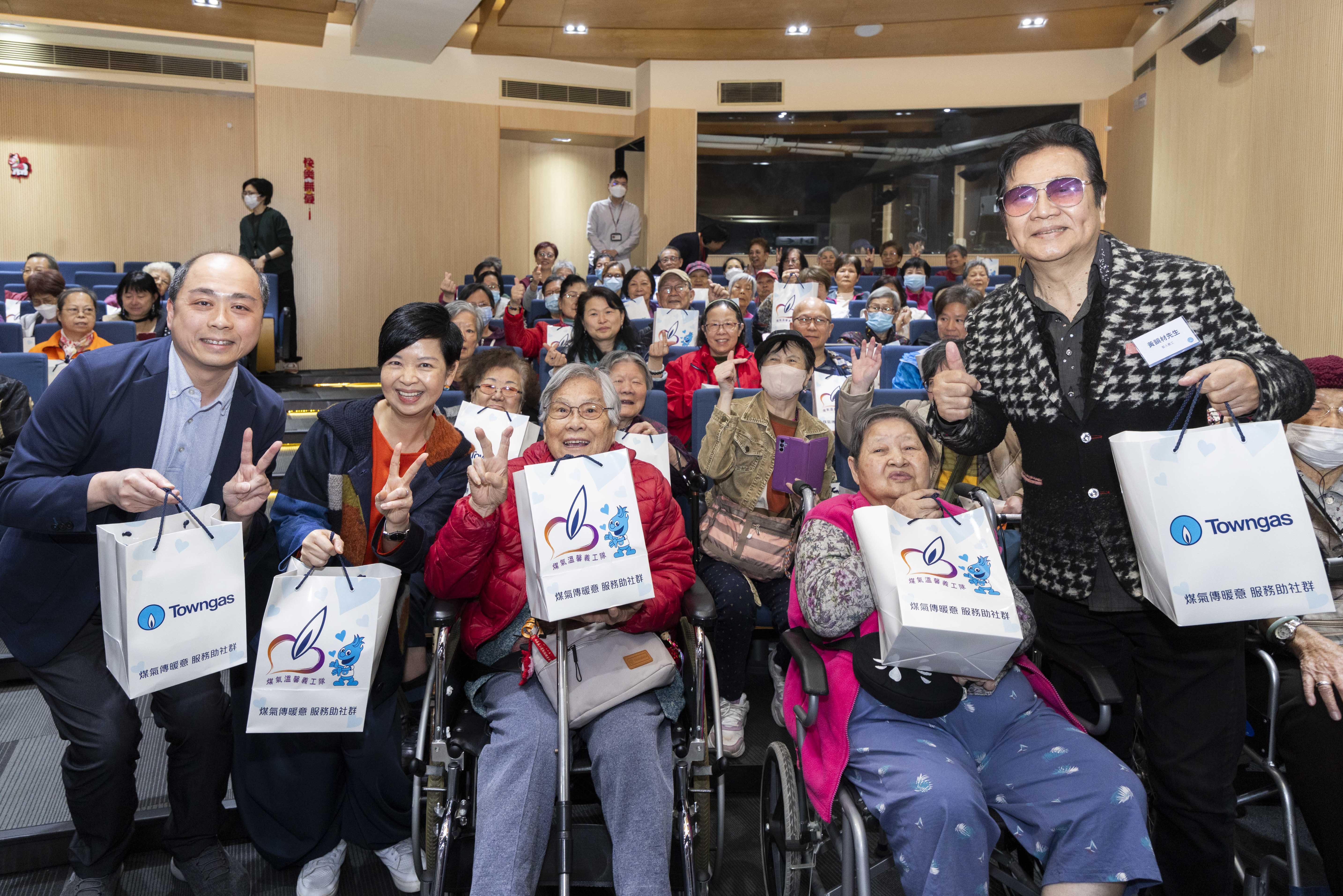 香港特區政府房屋局局長何永賢、煤氣公司營運總裁—香港業務鄭曉光一同出席捐贈啟動禮,並向會場內200多位長者派發福袋。鄭曉光表示:「煤氣公司的服務與市民的衣食住行息息相關;今次得到房屋局的大力支持,為老友記送上感受得到的溫馨暖意,同時亦是一個嶄新開始,預示著未來將有很多合作機會,為房署轄下的公共屋邨長者舉辦多元公益活動。」